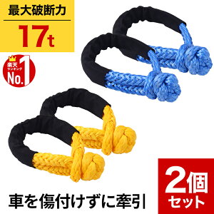 【サイズ】:直径:15mm、長さ:56cm、最大破断強度:17236 KG。【素材】:合成繊維製でできて、 軽量で丈夫です。鋼製シャックルと比べて、より安全です、ガタガタしたりバンパーの塗料が損傷したりすることはありません。【持ち運び・使用