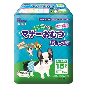 【商品説明】●男の子のマーキング、おもらし、介護、おでかけの用途に使用できる、使い捨てタイプのマナーおむつです。●これまでペット用紙おむつの課題であった、男の子の「おしっこの前とび」を防ぐ新機能「おしっこストップポケ