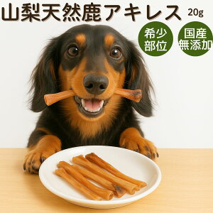 ・名称:鹿アキレス ・原材料名:鹿アキレス腱 ・内容量:20g ・賞味期限:1年 ・保存方法:直射日光を避け、常温で保存。封を開けたら冷蔵庫で保管し、2日以内に与えて下さい。 ・販売者:株式会社イェーガー東京都小金井市本町1-13-13 ・