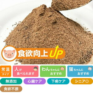 特徴 食欲向上パウダー 豚のきもち 30g国産豚の新鮮なレバーを乾燥のみさせたパウダーです!免疫力アップにつながるビタミンA、タンパク質、ビタミンB1・B2、鉄分が豊富!パウダーなので、消化吸収に優れ、病中病後、シニア・パピーに特