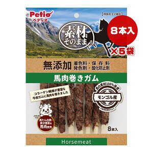 ・噛みごたえ抜群で、噛めば噛むほど馬肉の旨味が楽しめます。 ・着色料・保存料・発色剤・酸化防止剤無添加。 ●原材料 肉類(馬・馬レバー)、牛皮、加工でんぷん、グリセリン、ソルビト