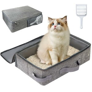 ポータブル 猫トイレ 蓋付き 45×35×13cm 地震対策 非常用 折り畳み 猫トイレ 撥水 お手入れ簡単 猫トイレ 本体 消臭 トイレ 猫 持ち運び 防災 避難用 車載 軽量 猫・小型犬用 猫のトイレ...