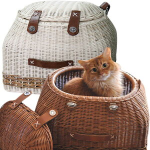 ラタンキャリー 籐 かご ボストン型 ハンドメイド ペットキャリ