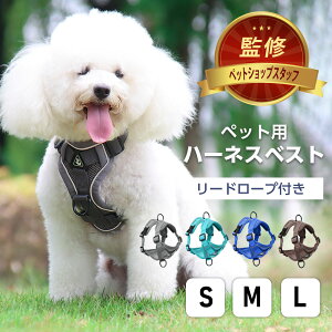 プにより、犬用ハーネスは簡単に着脱できます。犬の頭を首ストラップに通し、ストラップを適切なサイズに調整するだけで、最大限の快適さと利便性を実現します。 【プレミアムな耐久性素材】犬用ハーネスは、品質な...