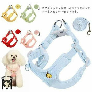 小型犬〜中型犬用のおしゃれなハーネス&リードセット! 通気性の良いメッシュ素材で快適。 お洋服を着なくても、これひとつで充分おしゃれに! 胸と胴体で負荷を分散するため、<br...