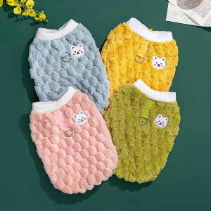 ペット服 犬用 秋冬 加厚 防寒 金亀 ベルベット ベスト ハーネス一体型 格子柄 かわいい ピンク イエロー グリーン ブルー