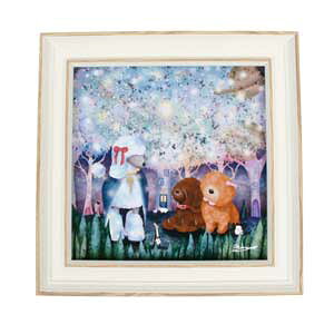 イギリスの作家サムトフトのアートフレーム【リトル サプライズ】です。サムトフトの不思議な世界は優しい雰囲気で癒されます。絵の表面に透明のゲルを使って凹凸加工を施し、油絵のような質感を出しています。ガラスを使用していない