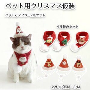 ペット用品 クリスマス 犬用 猫用 犬服 帽子 スカーフ 2点セット コスプレ 犬 猫 ペット おしゃれ サンタクロース クリスマス パーティー おそろい 男の子 女の子 カワイイ 猫 犬
