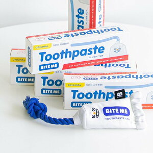 歯磨き粉モチーフのユニークなロープトイ★ チューブ部分の中にはピーピー音やカシャカシャ音のする楽しい仕掛けを内蔵♪ ロープをカミカミすることでデンタルケアもできちゃいます! ポイント ★ピーピー音は、小さめの音が出る鳴り笛
