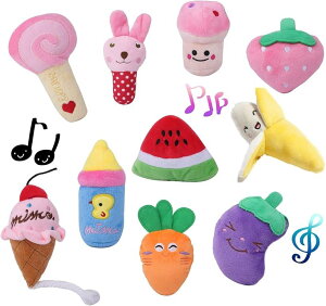 ・?音の出る犬おもちゃ 食べ物シリーズ+うさちゃんの10点セット・?「安全素材」子供用品と同等の品質基準の安全なコットン素材で作られた、生地が柔らかく、肌触りも抜群。子犬や、小型犬にお勧めできる大きさで...