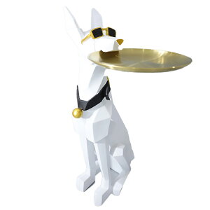ゴールド色のトレイを咥えた、ドーベルマン犬 小物テーブル彫像 オーナメント置物装飾 ホームデコ プレゼント 贈り物輸入品 --------------------------- Doberman dog...