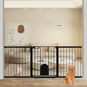 ベビーゲート ペットゲート ペットドア付き 猫 犬 ゲート 高さ76cm ベビーフェンス 突っ張り式 ダブルロック 自動閉鎖 両開き扉 赤ちゃんゲート ベビーガード 玄関 階段 拡張フレーム付き(ブラック、取付幅...