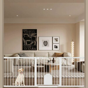 【ペットドア付き】ベビーゲートの本体高さは78cm、ベビーゲートには猫と小型犬の出入りに便利な小さなドアが付いています。25.5*18.5cmのペットドアは小さなペットを通過させることができ、大きなペットを外に遮り...