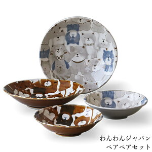 ▲期間限定 SALE価格▲ 【わんわんジャパン ペアペアセット】 1枚のお皿の中に、柴犬・土佐犬・秋田犬と日本の犬種が大集合。 釉薬と撥水の組み合わせで、より可愛らしい雰囲気に仕上がりました。 軽量で普段使いもしやすい器です...