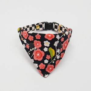 猫さんの首輪用のバンダナです。 「梅とウグイス」という縁起の良いものが並んだ、お正月にぴったりのデザインです。 首輪よりも面積がありますので、長毛の猫さんなど首輪が埋もれてしまう子にもオススメです! 洋猫さんにも和猫さん