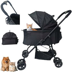 ◆商品名:Kontuly ペットカート 犬カート 4輪 小型犬 組み立て簡単 折りたたみ式 軽量ファッション (ブラック)【仕様】犬カート展開サイズ(約):長53cmx幅35cmx高さ90cm 収納サ...