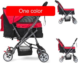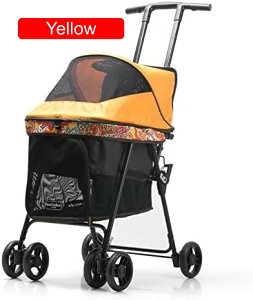 ワンタッチで簡単に折りたたみ、場所が取らず、コンパクトに収納できます。旅行中でもとても便利です。犬カートバギーの下部には、大容量の収納バスケットが付き、散歩用グッズやペット用品は収納できます。また、カート転倒防止のため...