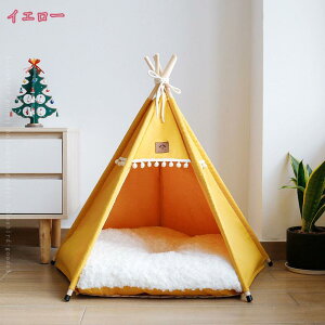 表地素材:キャンバス内部素材:キャンバス詰め物素材:PP綿【安定感のある独立空間】暗くて狭い場所が好きなネコちゃんやワンちゃんにぴったりなペットハウスです。木と布を使ったシンプルなテントなので、お部屋の景観をまもりつつ