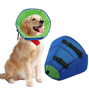エリザベスカラー 犬 猫 通気性 調整可能 柔らかい 軽量 傷舐め防止 引っ掻き防止 術後傷口保護 術後ケア 中大型犬用 (ブルーグリーン, L:深さ26.5 cm、首周り約40〜48cmに対応)ブラ...