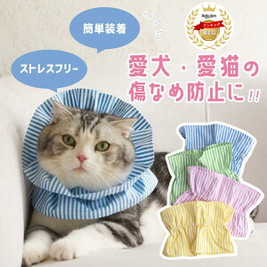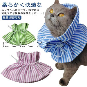 送料無料 嫌がらない ストレスフリー ソフトタイプ スタイとしても使用可能 かわいい ストライプ ひっかき防止 術後ウェア ストッパー付き ゴム 調節 怖がらない 視界良好