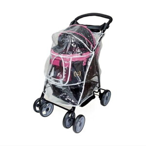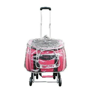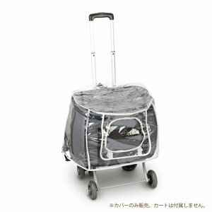 多機能ペットカート スイートハートSサイズ専用レインカバーです。雨の日でもわんちゃんやネコちゃんと快適にお出かけ。バックをすっぽり覆う専用のレインカバー。かぶせてマジックテープで留めるだけの簡単装着。透明なのでワンちゃ