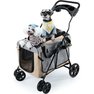 SKISOPGO ペットカート 分離型 犬用ベビーカー いぬ用 バギー 折りたたみ式 ペットバギー 前輪360°回転 後輪ブレーキ付き 組み立てビデオ 耐荷重20Kg 小型犬 中型犬 (カーキ)ブランド:...