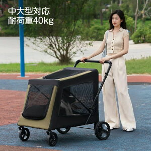 【中型・大型犬専用】ペットカート 両開きドア 介護/通院に 犬用カート 折りたたみ式 大型犬対応