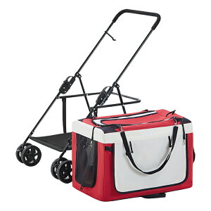 ハイポジションハンドル(102cm)で楽な姿勢で押しやすい。 改良版&分離型ペットカート:犬用カートコンパクトはペットキャリー部分が取り外しできる。ドライブボックスや簡易ハウス代わりとしても使えて、ペット...