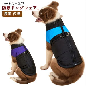 ハーネス一体型防寒ドッグウェア。表生地撥水加工済み、中綿入りの秋冬にお勧めのあたたいドッグウェア。ハーネスとジャンパーが一体になった防寒ジャンパーです。背中にファスナー仕様で、楽にリードを付けられます...