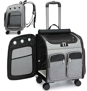 【大空間】2匹の猫や小型犬を手軽に入れることができ、バッグの内部サイズは41 x 30 x 43センチ、重さは3.2 kgです。猫、犬、小型ペットに適用されます。 【ミュートユニバーサルホイール】牽引、ショルダーキャリー、ハンドヘルド...