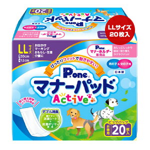 【商品説明】おしっこを瞬間パワフル吸収!愛犬の生理・マーキング・おもらし・介護のほか、お出かけ時のマナーなど様々なシーンで大活躍の「マナーパッドActive」のお徳なビッグパック。銀イオン消臭シートと抗菌ポリマーの力でニオイ