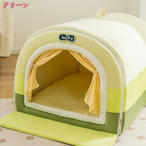 【暖簾】このペットベッドはドーム型のデザインなので、防音性に優れており、動物が隠したがる性質にも合っています。新たに暖簾のデザインをして風防を強化し、ペットのプライバシーを保護します。ペットハウスので...