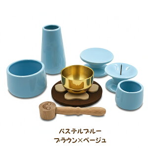 大切な家族だったペットちゃんのために、心を込めてお祈りできるようにデザインされたペット専用のミニ仏具セットです。 やさしいパステルカラーの陶器と、かわいい肉球モチーフのフェルトマットおりんが