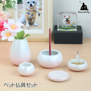 これからもずっと一緒だよ… ミニサイズでペットちゃんの供養にオススメです! グラデーションピンクが可愛い仏具セットになります。 透明感のある表面には、花吹雪か雪のような 白い粒が散っており、優しさを感じさせてくれます...