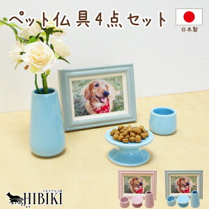 大切なペットちゃんを偲ぶための 「ペット用仏具4点セット」。 小さなスペースでも心を込めた供養ができるシンプルで上品なデザインの仏具セットです。 セットには 花器・湯飲み・供物台・フォトフレーム の4点を揃えました。 花器には