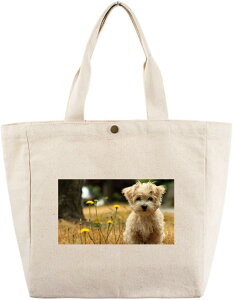 *ドッグ柄、厚手のキャンパストートバック(大)です。*画像3は、プリントイメージです。 実際の商品には、表面に画像1、裏面に画像2がプリ ントされます。 動物柄がプリントされたトートバッグです。厚手の生地で丈夫です。A4対応で