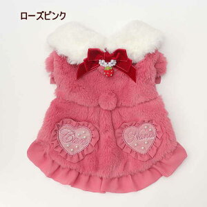 クリスマス時期から本格的な冬の間じゅう活躍する、なめらかな風合いファーのワンピースコート。女の子らしい丸襟が可愛らしさをアピールして、スカートのハートアップリケ、フリル、パールが着こなしをさらに素敵にみせてくれます。赤のベルベットリボ...