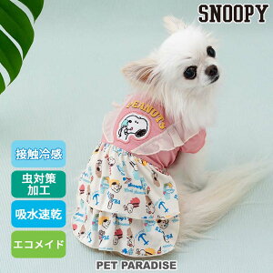 小型犬・中型犬向け!ワンちゃんの着心地を考慮した伸縮性抜群のペットウェアです。大人気のデザインを採用した、夏らしいSNOOPYのペットウェア!濡らしてCOOL!吸水速乾、洗っても効果が持続。首回り、袖周りのリブが伸縮素材のため、動