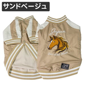 馬の刺繍が映える!かっこ可愛いスカジャン風ドッグウェア 柔らかな馬の刺繍と都会的なくすみカラーで新鮮な印象。 光沢のある生地に刺繍を施し、高見え感も◎。 2026年の干支をモチーフにした「ウマモコ」シリーズで、ワンちゃんと一緒