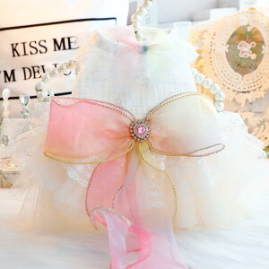 サイズ:S/M/L/XL/XXL 素材:ポリエステル /綿 柔らかい 素材で作られており、かわいらしいデザインが特徴です。 リボン レース キラキラ 結婚式 お祝い リングドッグ 記念 リードを簡単に取り付けられるため、お散歩にも最適です。