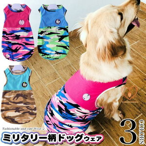 カモフラージュ柄のお洒落なデザイン♪ タンクトップタイプのドッグウェアです。 お散歩の時間が楽しくなりますね☆ 【サイズについて】 画像をご参照ください。 【カラーについて】 生産ロットにより柄の出方や色の濃淡が異なる場合が