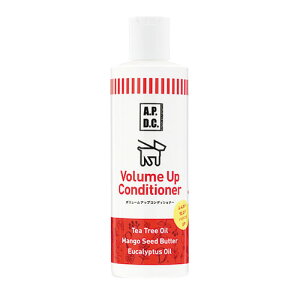 APDCティーツリーコンディショナー 犬用 250ml。原材料ティーツリーオイル、紅藻エキス、ヒアルロン酸ナトリウム、ユーカリオイル、ローズマリーオイル、ラベンダーオイル、シトロネラオイル、ビタミンE、香料、保存料。