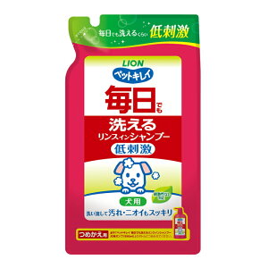 【生後3ヶ月以上の愛犬用/リンスインシャンプー/気になる汚れ・ニオイに/つめかえ用】 肌にやさしく毎日洗っても安心。刺激性なし判定の低刺激シャンプー。洗浄成分の100%が植物生まれ。泡立ちが豊かで泡切れもよく、デリケートな