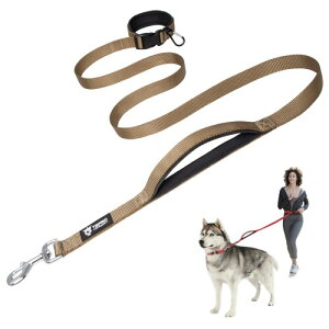 TSPRO ハンズフリー犬用リード 調節可能な散歩・ランニング用 安全コントロールパッドハンドル付き 重いクラスプ搭載 中型〜大型犬用(カーキ色,L-25) 【ハンズフリー / ハンズオン切替え機能】多目的ハンズフリーリードは...