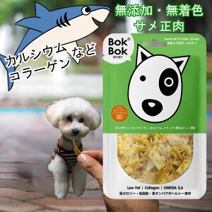 大人気のサメジャーキーを食べやすい大きさにカットしました。 無添加・無着色でワンちゃんの体にとても優しいのが特長です。 歯ごたえがあり、しっかり噛んで食べたいワンちゃんには最適! BokBok(ボクボク)は、幼犬から老犬まで安心