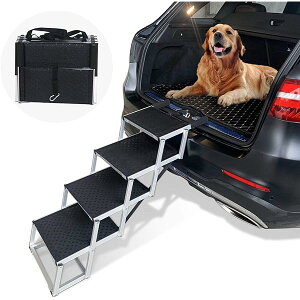 ペット階段 犬ステップ 車乗り降り ペットスロープ 折りたたみ 高齢犬乗車 滑り止め 介護用 収納便利 大型犬猫用スロープ 車への昇り降りをラクにする 高さ調節可能 高齢犬 介護 耐荷重80kg ブラック (4段)ブランド