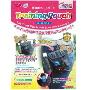 携帯用トリートポーチ ペットとの外出時やトレーニング時に便利で丈夫なトリートポーチ。 装着方法はベルトに直接引っ掛けるか、ベルト穴などにフックで吊り下げる2ウェイタイプ。 収納タイプのサイドポケット付きで市販のペットボトル
