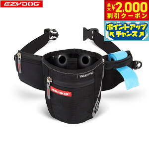 ストラップ付の機能的な犬用トリーツバッグ。トリーツを入れるメインバッグは手入れが容易、開閉は壊れにくいマグネット式。ベルトに付けたり、肩からたすき掛けができます。商品名イージードッグ EZYDOG スナックパックブランドEZYDOG材