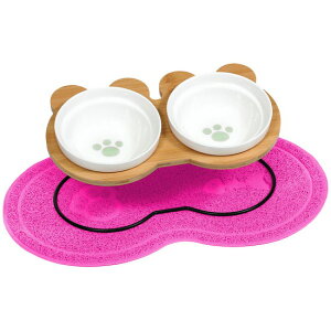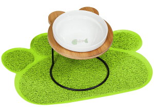 肉球型 セット 猫 犬 食器 えさ 皿 餌入れ フードボウル ペット ご飯皿 水飲み マット 食べやすい 傾斜 餌皿 エサ入れ 滑り止め 陶器 アイアンバンブースタンドシングル サイズ エサ皿:(約)16.5cm×19cm...