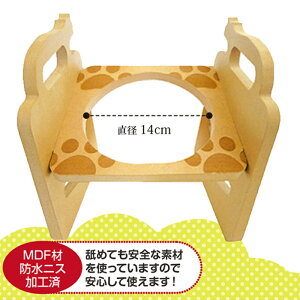 犬猫ペット用、MDF製の食事台。 ボウル1個用です。 工具不要でカンタンに組み立てられます。 防水ニス加工済み。 舐めても安全な素材を使用していますので、安心してお使いいただけます。 ネコちゃんが食べやすい角度です。 成長に合わせ